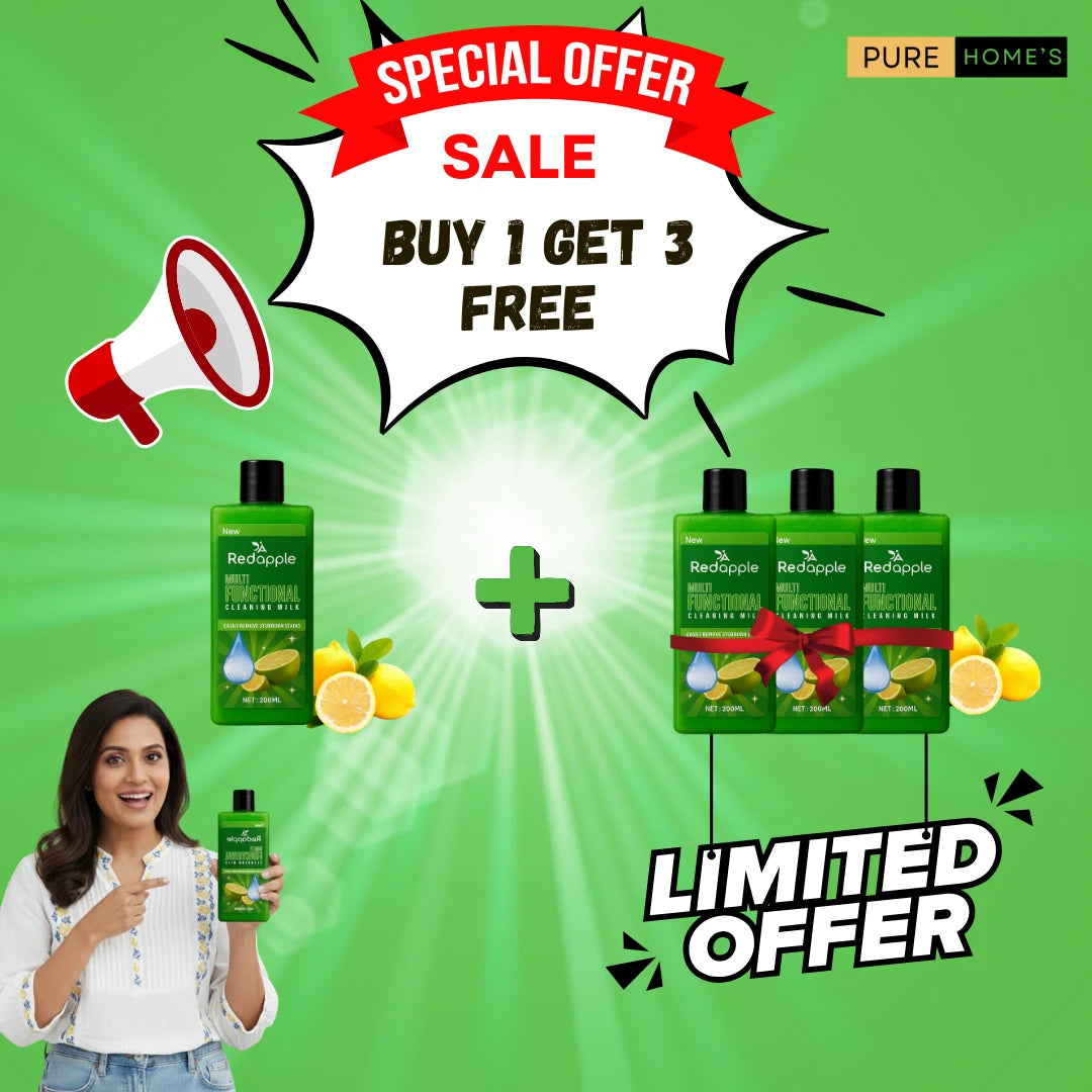 Introducing Redapple™ All-in-One Multifunctional Cleaning Milk – a powerful yet gentle cleaner designed to make cleaning effortless and effective.